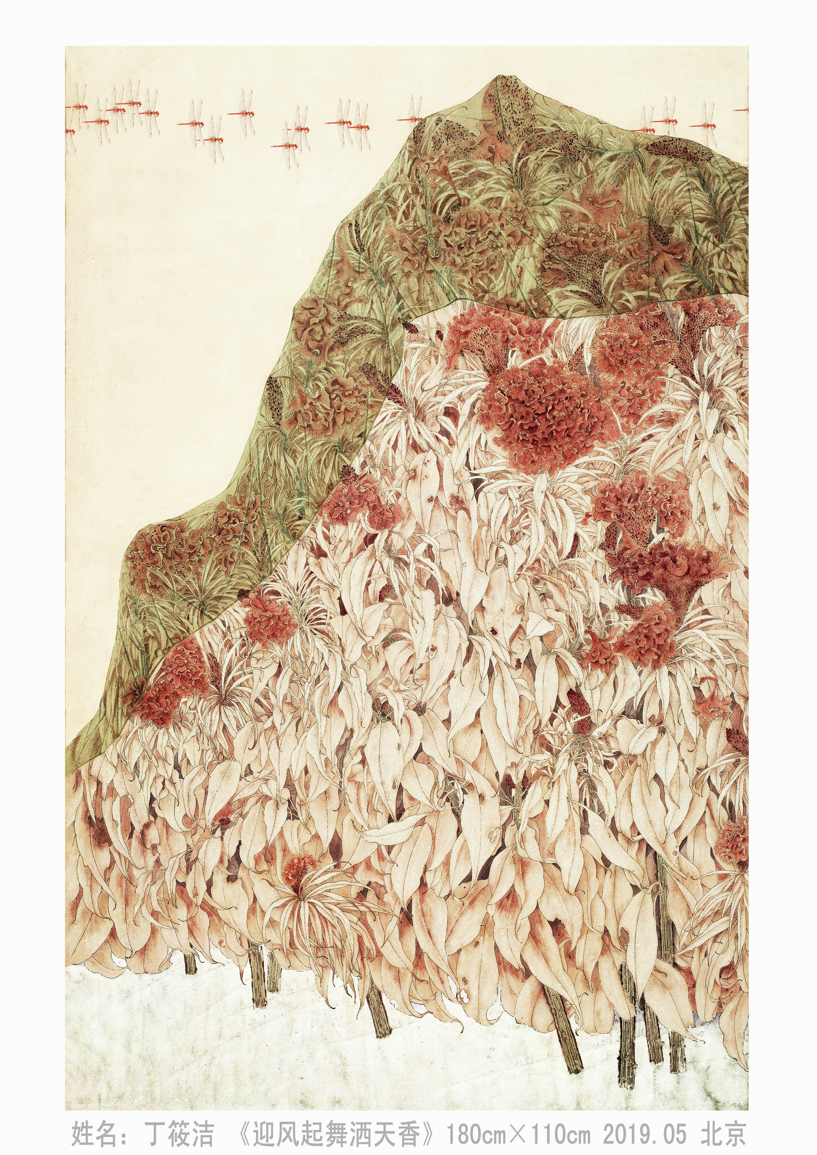 洛阳丁丁(丁筱洁) 《迎风起舞洒天香》 180cm×96cm 纸本 工笔 2019.05