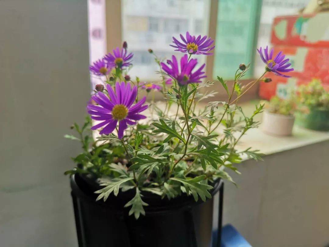 松叶牡丹还被称作死不了,他是只能被养死了,两个月不浇水,或者是爬起来晒几天也不会挂掉,他在常年温暖干燥的环境下,每天保持有8小时以上的直射光。最近养护温度保持在5度以上。环境通风透光,这样他就能够保持常年开花的状态了。
