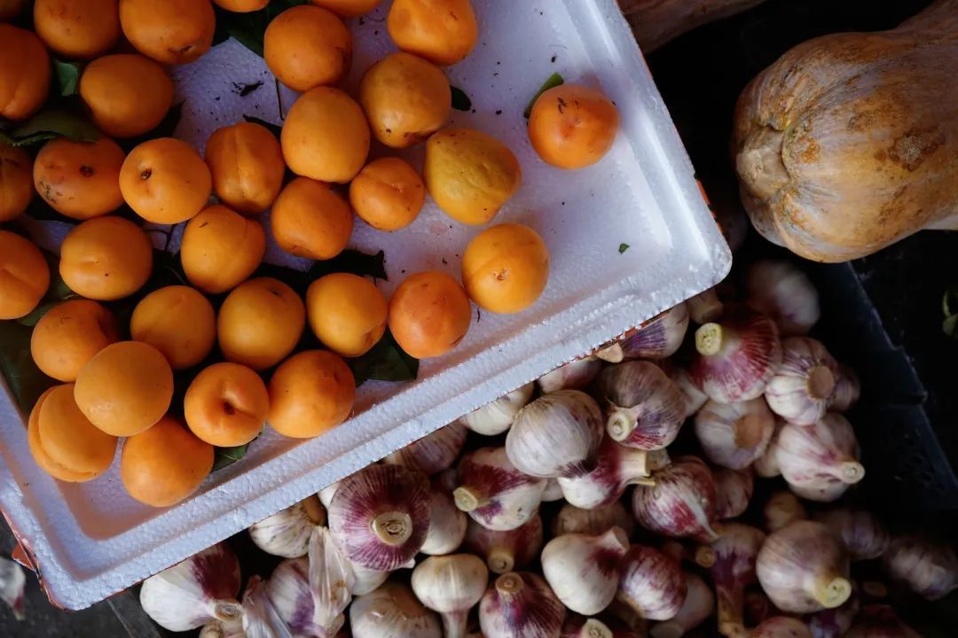 苦瓜、丝瓜、冬瓜、南瓜、葫儿瓜是这个季节的常客,太婆更在意少见和售卖周期短的蒜瓣。灶台下的坛子已经清理好,只等外皮略带红色和紫色纹路的蒜头进入。