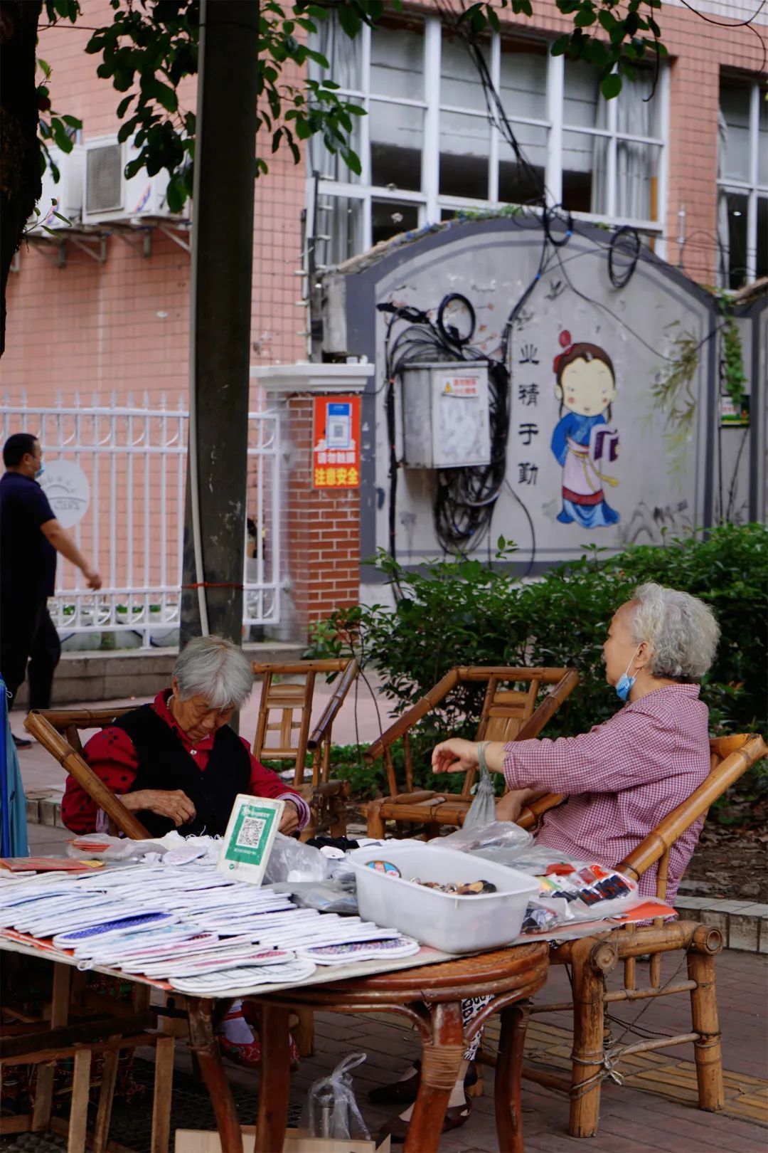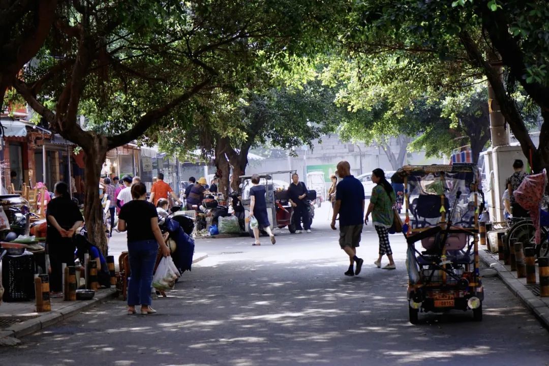并非临主路的背街小巷,对交通的影响有限。小区老旧,树木茂盛,摊贩扎堆,人头攒动中,仿佛来到某个县城的老街,每走一步,都像是熟人和熟事。