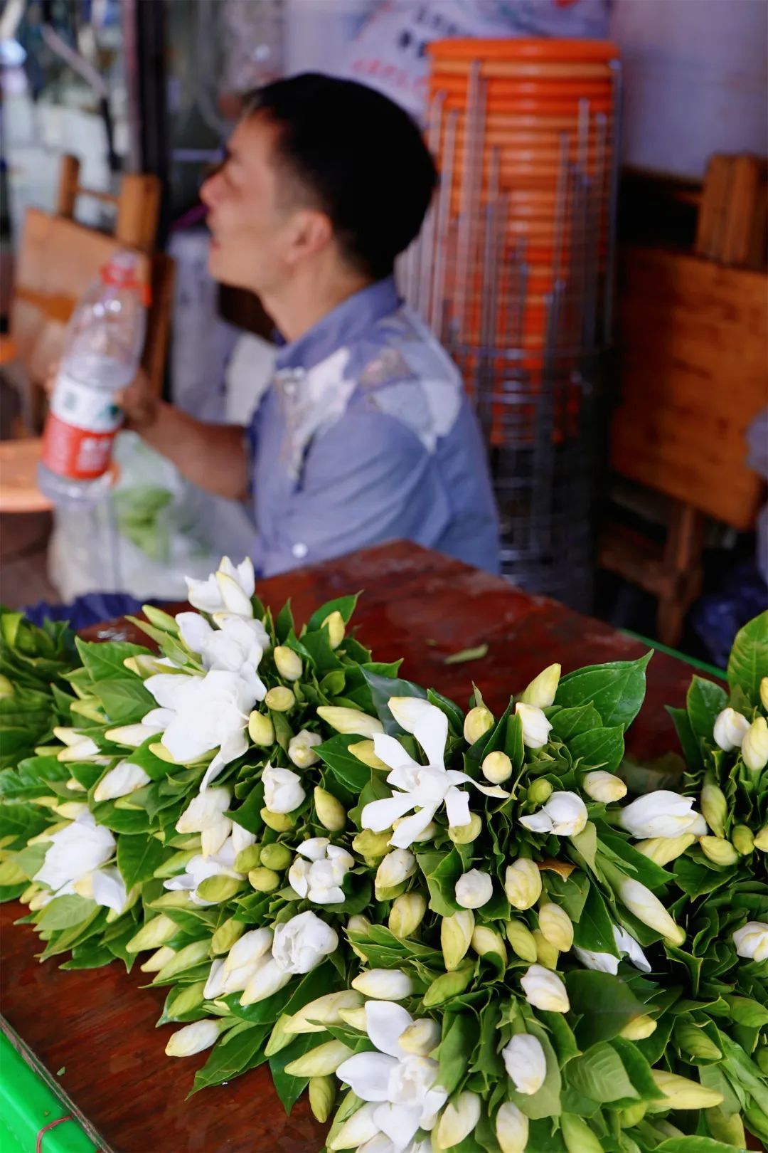 “每年他都在卖……他的栀子花要香些”。新手怕花苞开不出。“拿水泡几分钟,花瓶中的水没过枝干。”