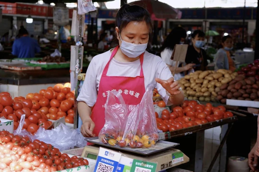 红黄喜人,有大有小,10余种番茄在自然光的照射下更显得诱人。只做番茄这一个种类的生意,逛八里庄菜市场,一想到要买番茄,肯定得找“老王家老味道”。