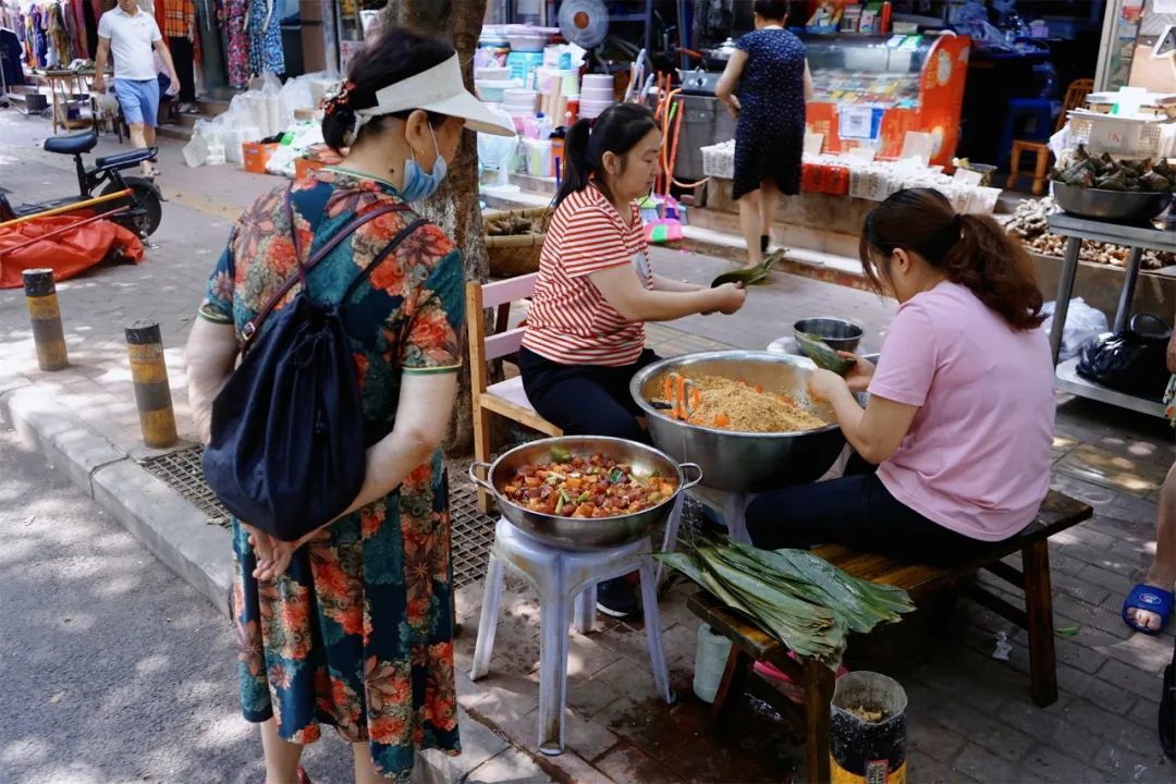 老板很骄傲,远在马鞍北路的太婆都要特地前来。马鞍北路,一直是成都最著名的粽子销售一条街。