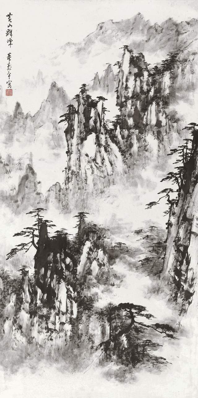 1954年,董寿平第一次登上黄山。面对大自然千变万化的美妙,不禁为之深深陶醉。他以清莹澄澈之心境,静心品味、反观观照,渐而进入“会景通神”之境。