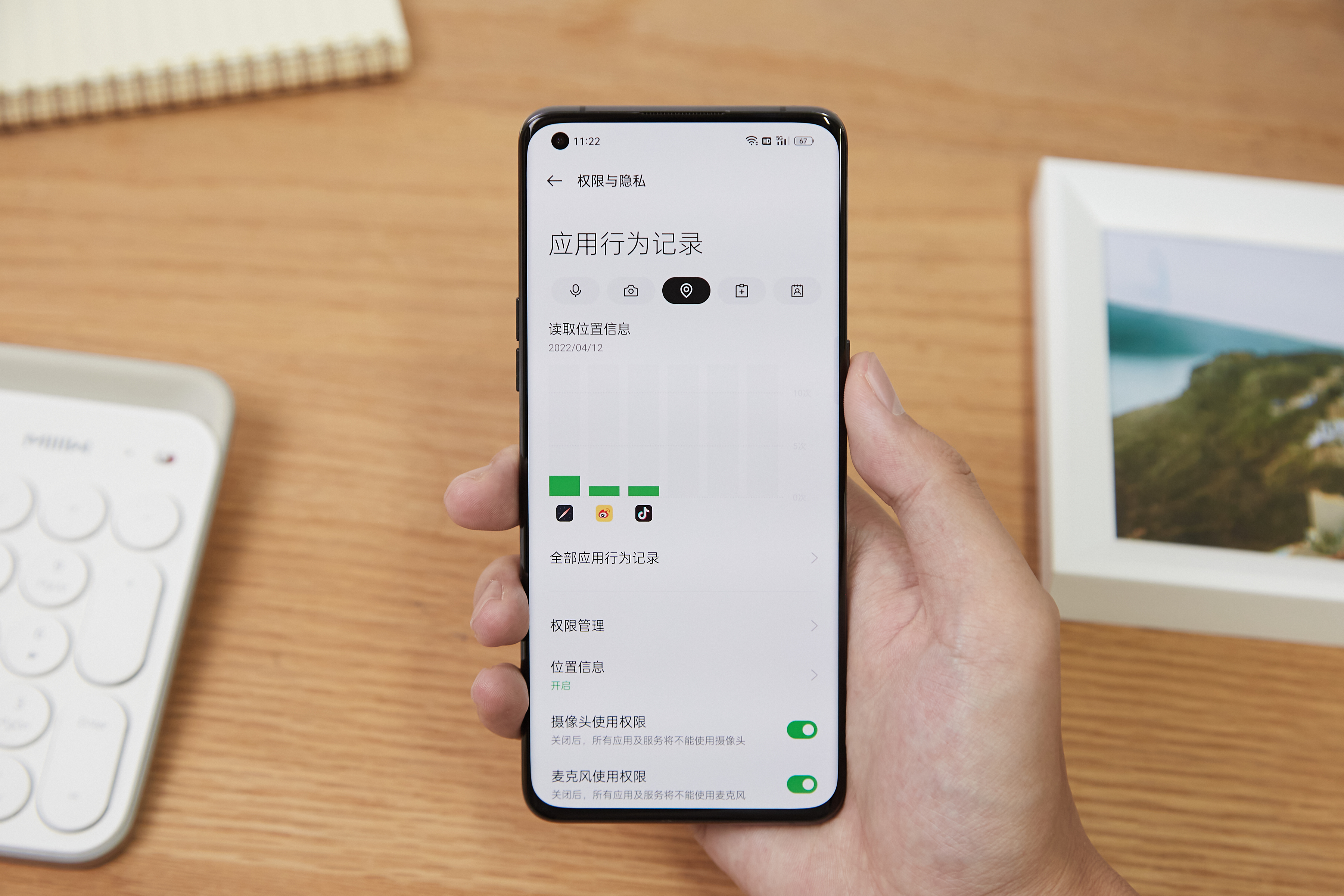 一部手机使用时间一长,可能不知不觉就装了很多APP,其中可能包括一些偷偷窃取权限的流氓APP。而OPPO Find X5 Pro就可以通过应用行为记录看到每个应用的调取权限状况,图表式的可视化呈现相当直观,用户也完全可以根据情况来自行开启或关闭APP权限调用状态,当有的应用需要调取麦克风等用户权限时也会发来提醒,这样用户便可以更加自主的掌控手机的状态。