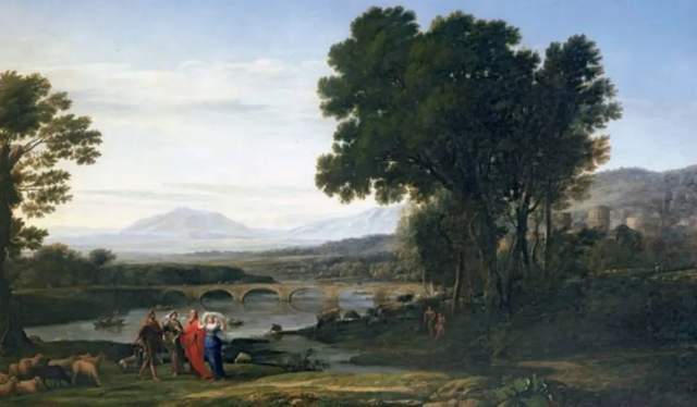 下:《雅各布、拉班和他的女儿们》,克洛德﹒洛兰,1654年,油画。