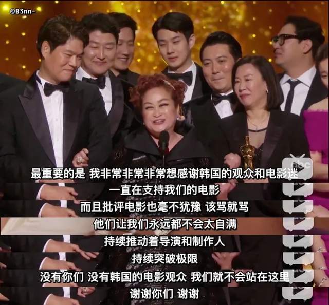 “感谢韩国观众和电影迷,批评电影时毫不犹豫,该骂就骂,他们让我们永远不会太自满,推动导演和制作人持续突破极限,谢谢你们…”
