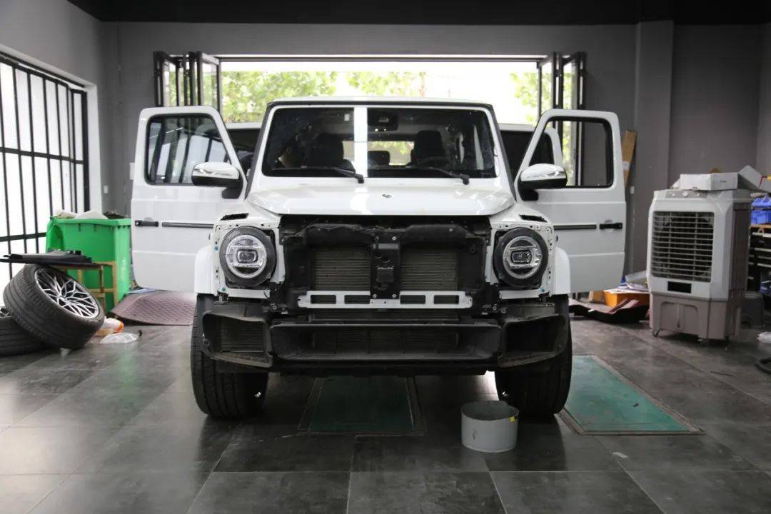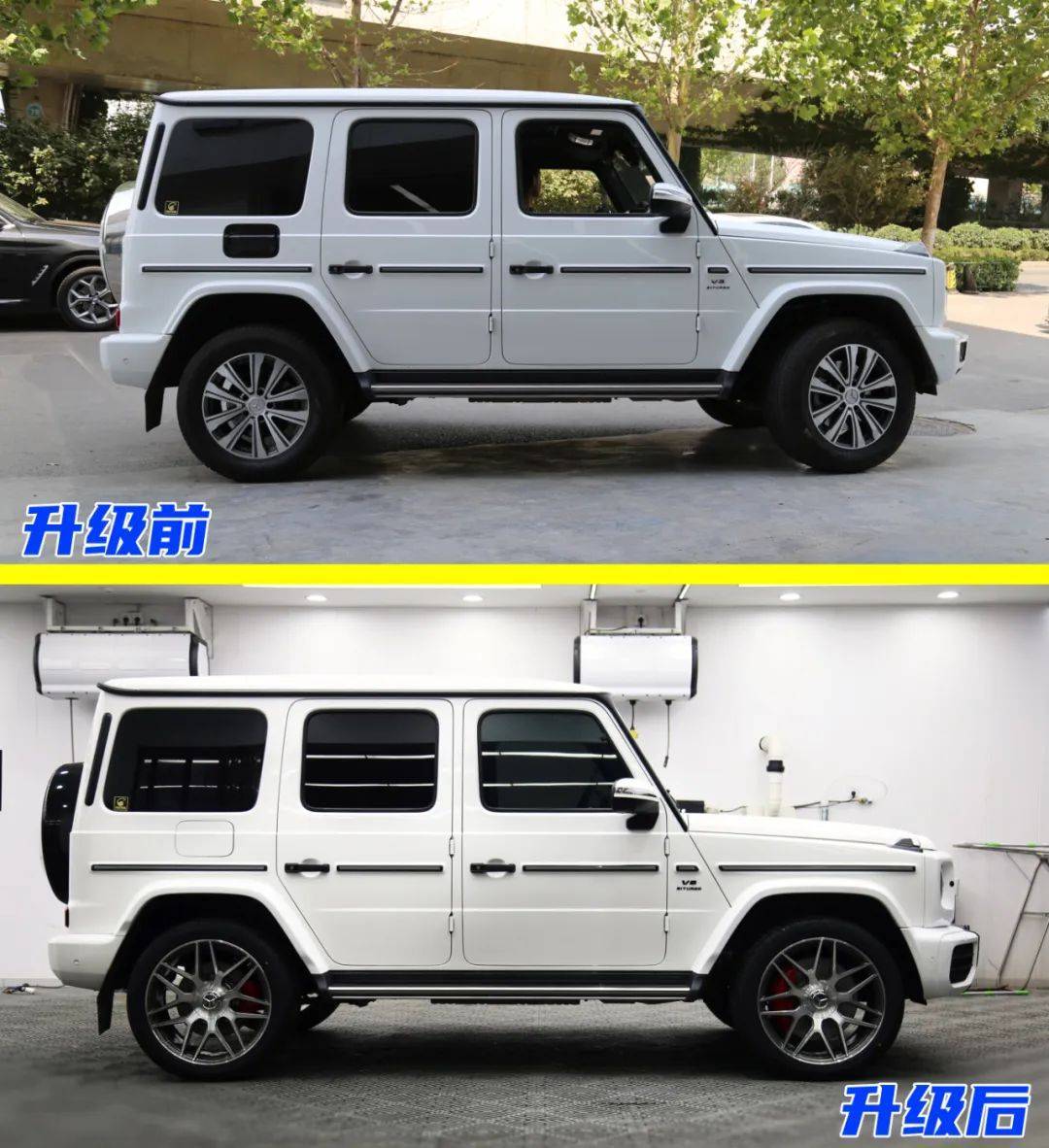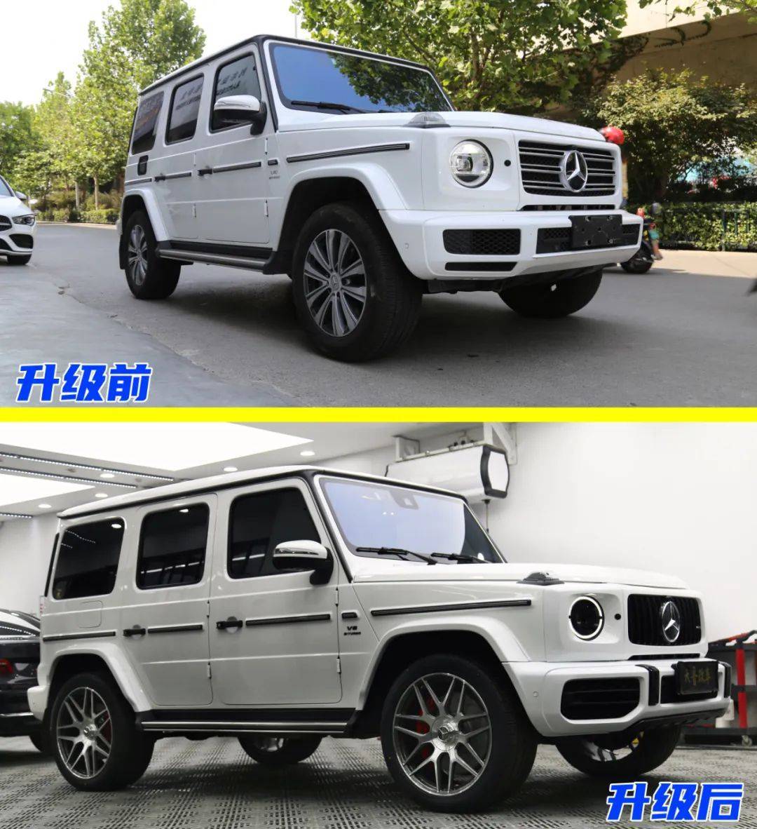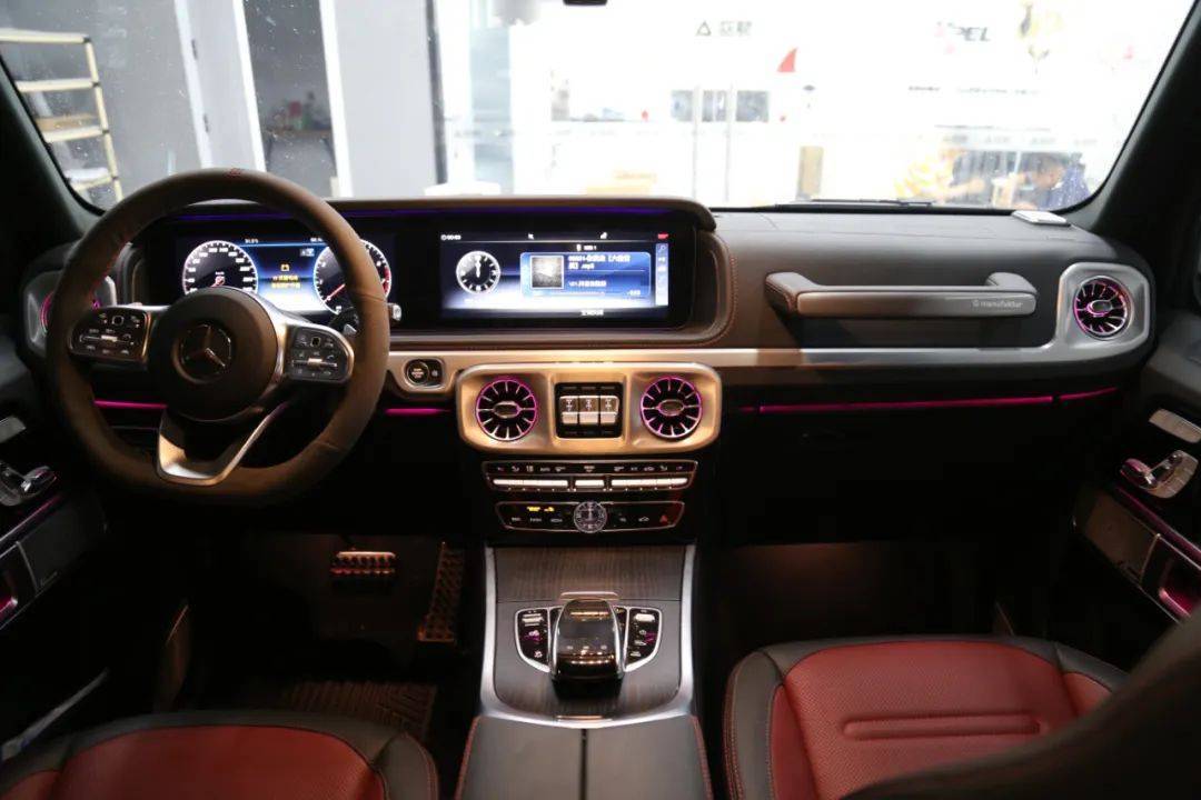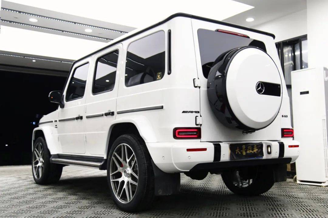 今天的改装主角是一台奔驰G350,此次升级的项目包括:G63包围➕AMG卡钳后轮喷漆加大盘➕22寸轮毂➕发光出风口➕主副驾驶红色安全带➕黑色g63字标➕熏黑角灯➕熏黑尾灯➕熏黑后视镜转向灯➕熏黑几何大灯。