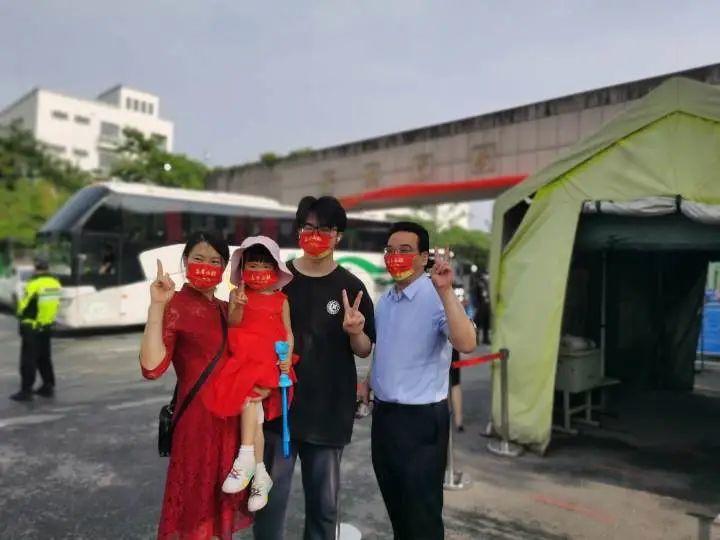 杭州市余杭中学门口,一家人送哥哥进考场,爸爸妈妈和妹妹祝哥哥考出好成绩。