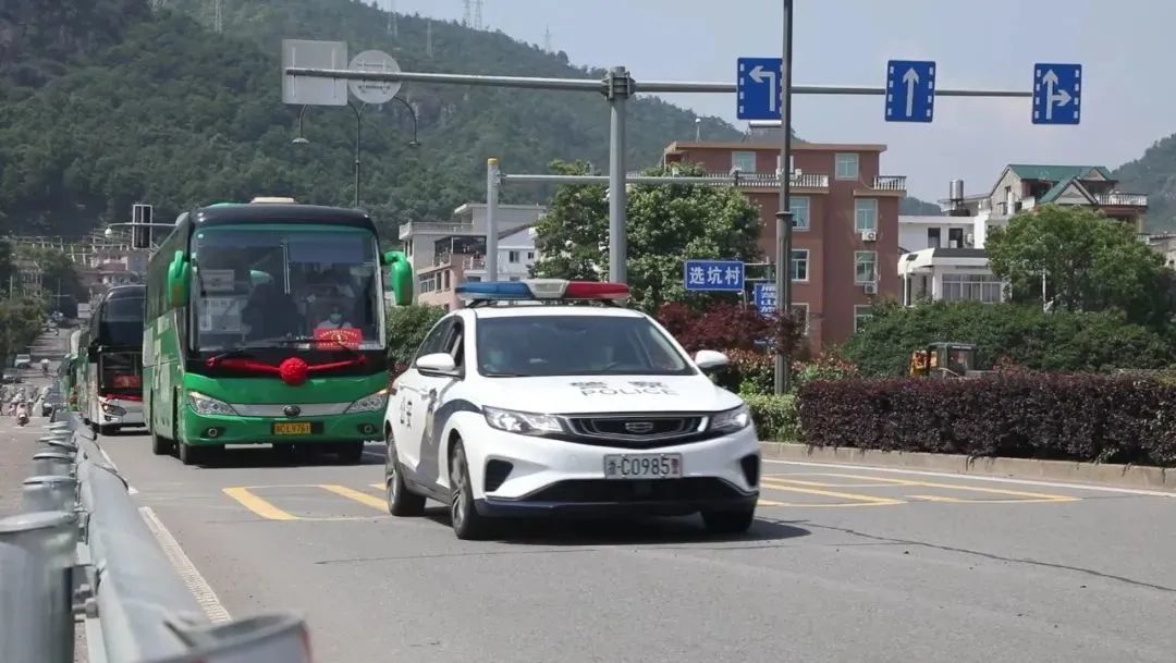 温州乐清,一辆车牌尾号为“985”的警车为车队开道护航,希望为考生们讨个好彩头,都能考上理想的大学。