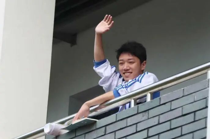 衢州二中教育集团博文中学,看见记者在拍照,这位考生热情地向镜头招手。