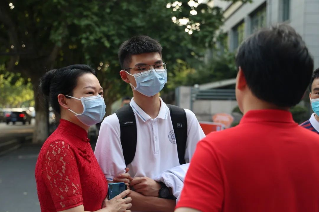 杭州第十四中学门口,老师鼓励刚刚结束数学考试的考生:“放平心态最重要,不需要想太多。”