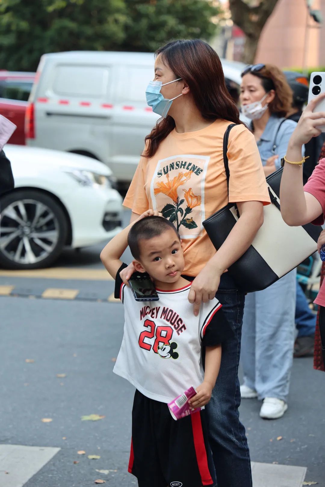 杭州第十四中学,考试结束后,妈妈带着二宝在门口等待,并打趣道:“你哥哥怎么还不出来,是要压轴吗?”