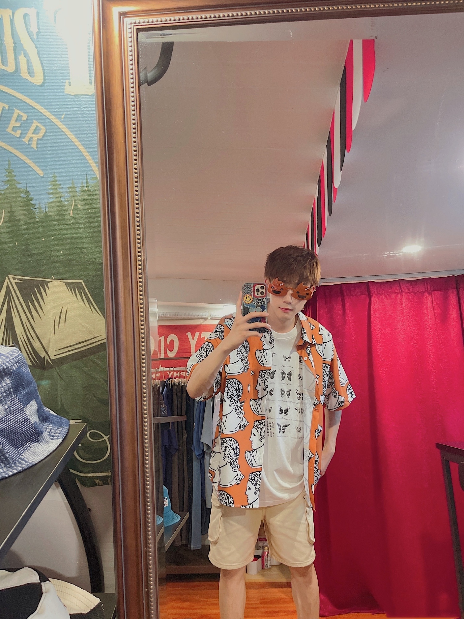 8日,演员谢兴阳在社交平台晒出一组旅游照,并配文:“厦门记忆”。照片中,谢兴阳身穿浅棕色印花衬衫,搭配蝴蝶图案白色T恤和卡其色工装短裤,戴着粑粑形状的卡通眼镜对镜自拍,帅气搞怪尽显可爱本性。