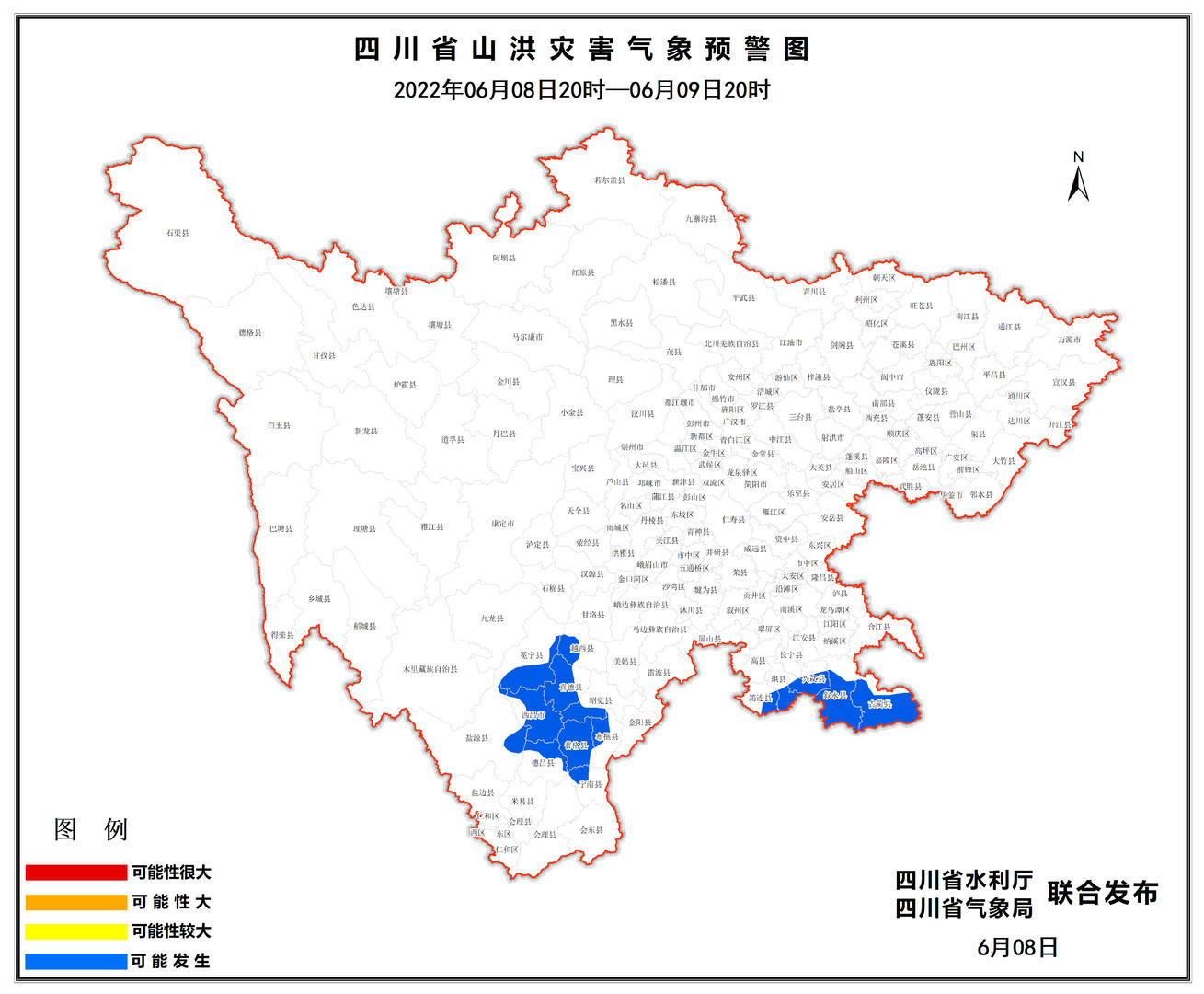 6月8日,红星新闻记者从四川省水利厅获悉,该厅和四川省气象局联合发布了山洪灾害蓝色预警,6月8日20时至9日20时,古蔺、叙永、兴文、珙县、筠连、西昌、冕宁、越西、喜德、昭觉、布拖、普格、宁南、德昌、盐源等县(市)可能发生山洪灾害。