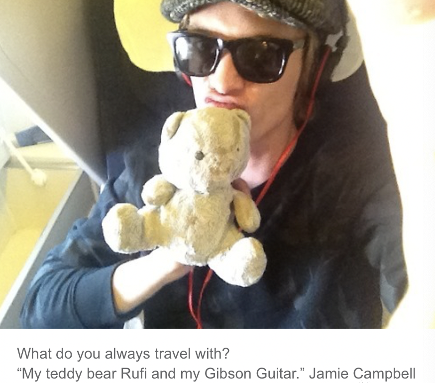 “我的泰迪熊Rufi和Gibson吉他。”
