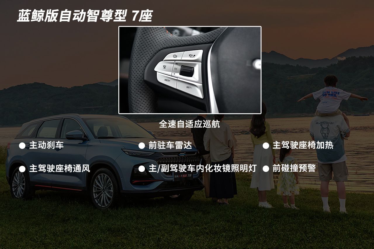 蓝鲸版自动智尊型 7座是最顶配的车型,相比上一款贵了5000元。配置上增加了主动刹车、前驻车雷达、全速域自适应巡航,这些功能可以增加日常用车的便利性。此外,主驾驶座椅增加了座椅加热和通风功能,进一步提升乘坐舒适性,不过只有主驾驶才有配备,有些可惜。总的来说,蓝鲸版自动智尊型 7座适合注重用车体验且预算充足的消费者,推荐指数:★★★