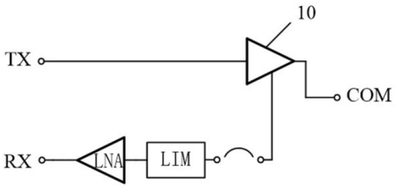 最后,如上图,该专利中展示的雷达系统中多功能功率放大器的连接关系图,该雷达系统为有源相控阵雷达系统,包括有射频收发组件、接收限幅器LIM和接收低噪声放大器LNA。多功能功率放大器的射频输入端PA_TX与雷达系统的射频输入端TX连接,多功能功率放大器的射频信号接收端PA_RX依次通过接收限幅器LIM和接收低噪声放大器LNA与雷达系统的射频信号接收端RX连接。