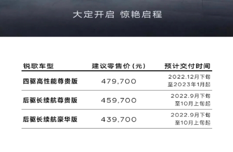 由此可见,LYRIQ锐歌为消费者带来的是前所未有的豪华纯电体验。据悉,2022年9月下旬至10月上旬起,纯电锐歌将开始陆续交付用户。首批交付车型为后驱长续航豪华版和后驱长续航尊贵版,感兴趣的朋友赶紧预约试驾吧!