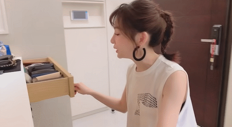 从王心凌随手拉开的抽屉来看,家中的小东西被收纳得井井有条,非常干净。
