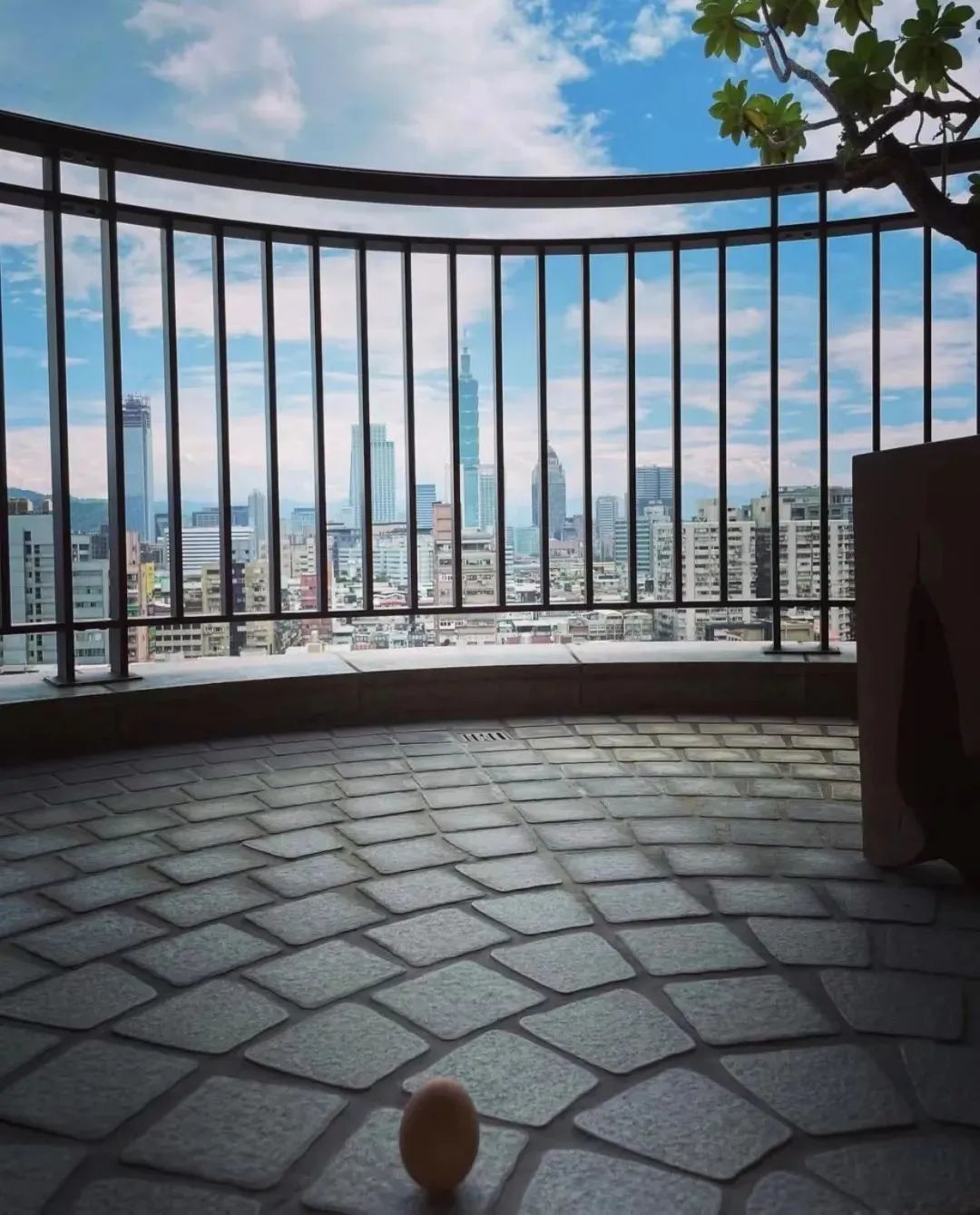 打开阳台门,是一个弧形的开放式大阳台,站在阳台上就能看到台北101大厦,可见王心凌家的地段很不错~