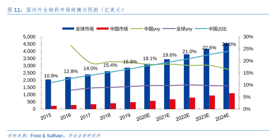 从2014年到2019年,我国生物药市场的复合增长率达到22.4%,远超同期全球生物药市场的复合增长率8%。