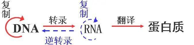 1958年,克里克提出分子中心法则,指明了遗传信息的流动方向是从DNA传递给RNA,再从RNA传递给蛋白质。