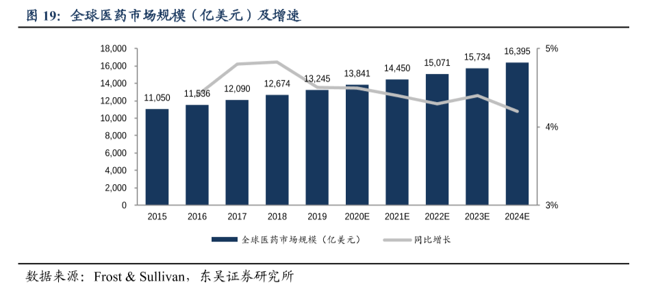 2020年,全球医药市场规模约13841美元,其中生物制药大约3131亿美元,占比约20%。