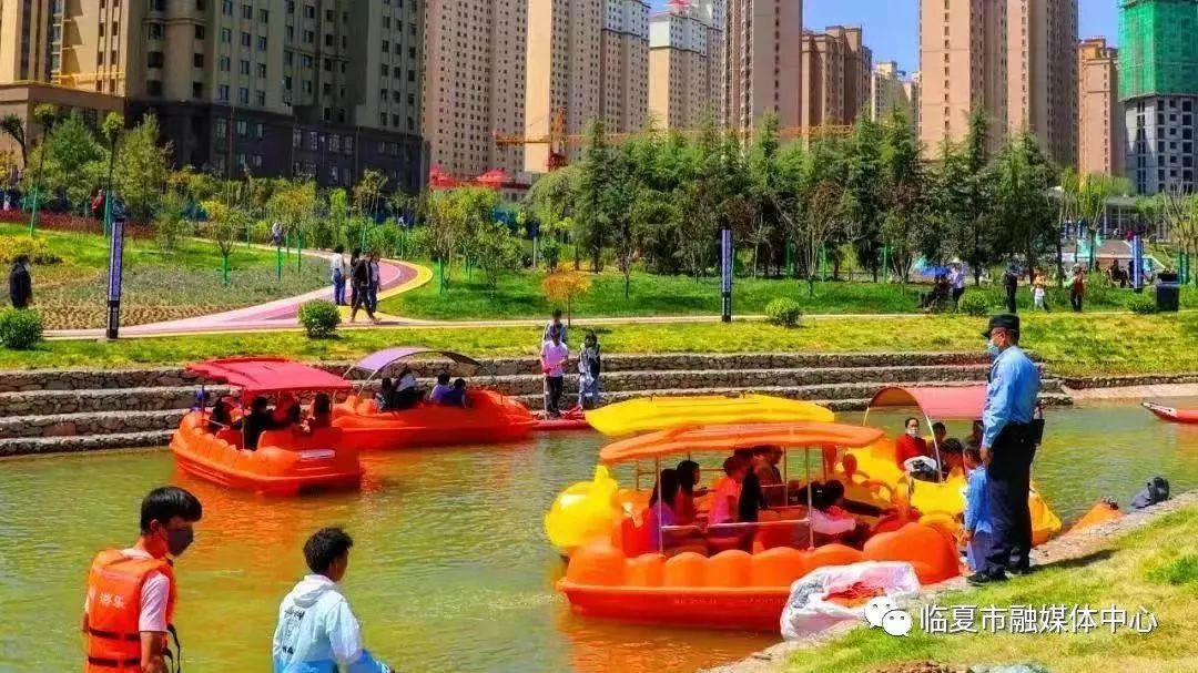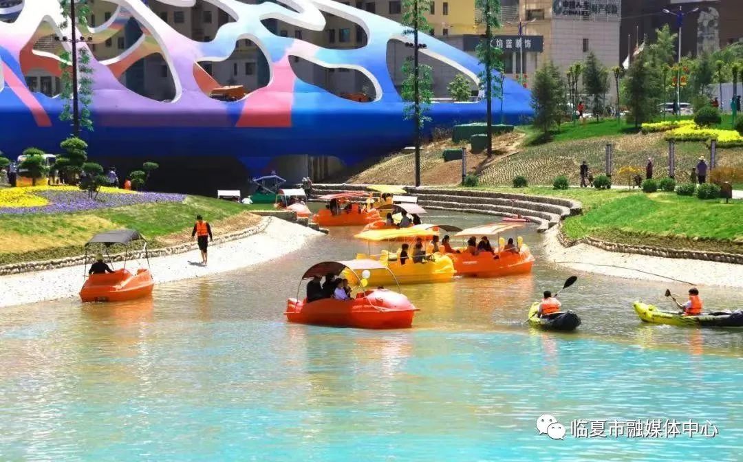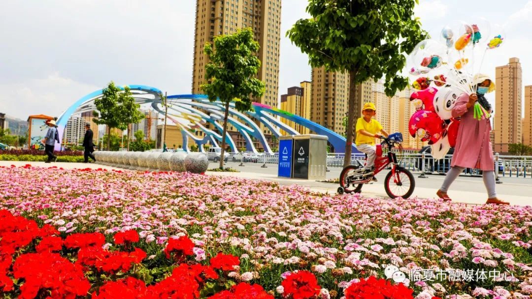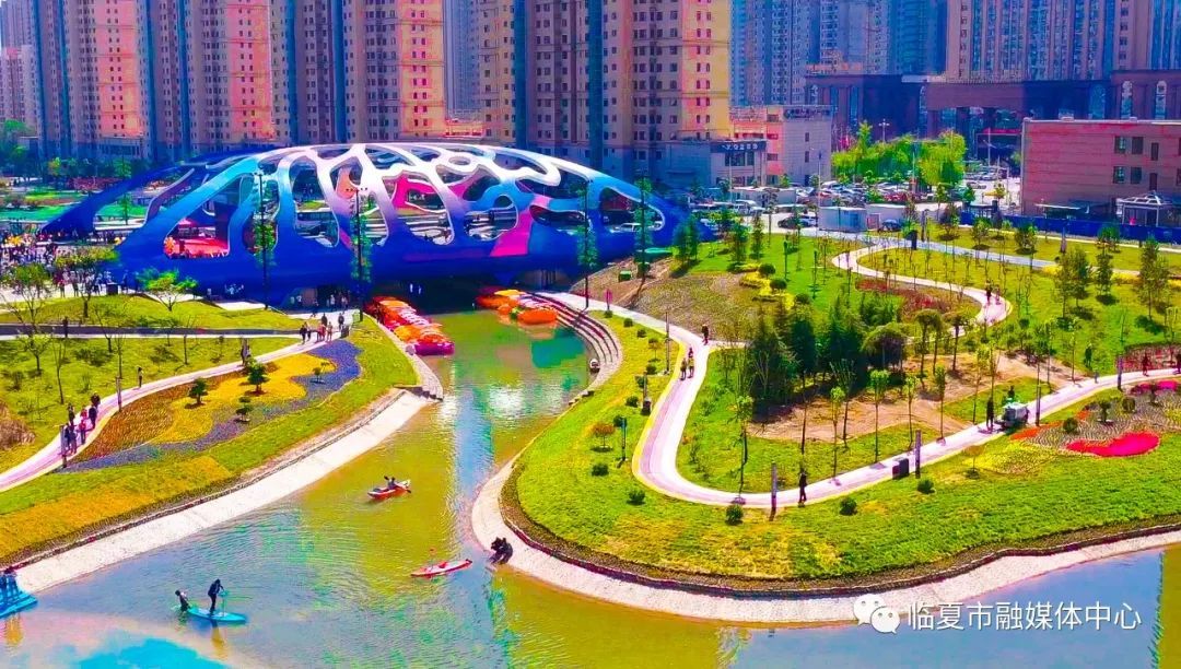 午后的阳光洒在平静的湖面上,微风拂过,泛起粼粼波光,彩色小船在湖面上慢悠悠地飘荡;湖畔的彩色步道蜿蜒数百米,步道两边各色鲜花竞相盛开,花香四溢,引得彩蝶翩翩;一座镂空蝴蝶造型桥梁横跨其中,好似振翅欲飞的彩蝶,更为这景色增添了一份别致的风韵……远远望去,高楼林立间,这一片美景像是在这座繁华的小城中铺开了一幅充满诗意的画卷。这就是位于临夏市前河沿东路的黄河国家文化公园——河州牡丹文化公园,自5月开园以来,这里便成了市民和游客打卡的热门景点。