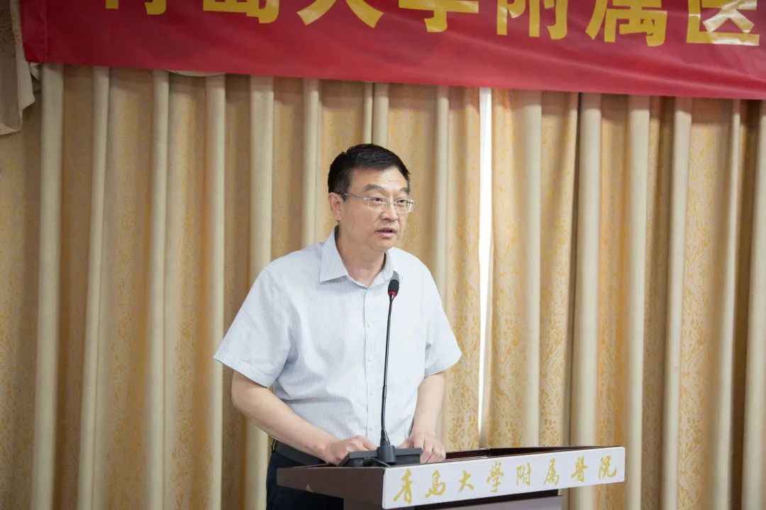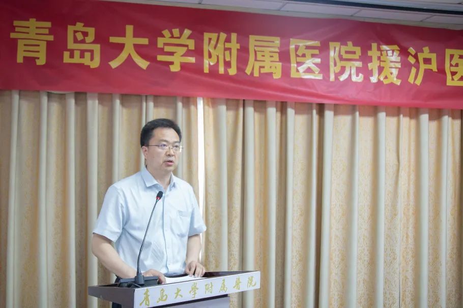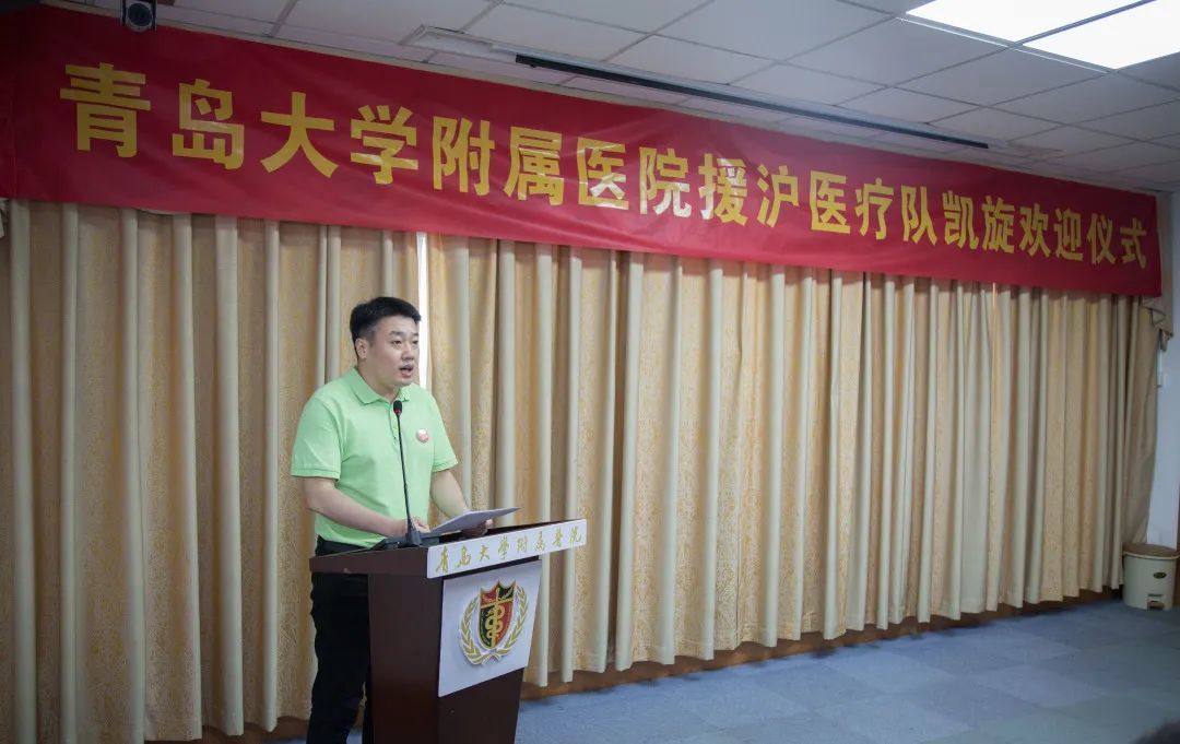 青大附院援沪医疗队队长、肾病科副主任蒋伟对在援沪期间的工作作了简要汇报。36名队员在上海抗疫的50多个日夜,充分发扬了青大附院人敢打必胜的精神,受到了山东省卫生健康委和山东省医疗队的表彰。