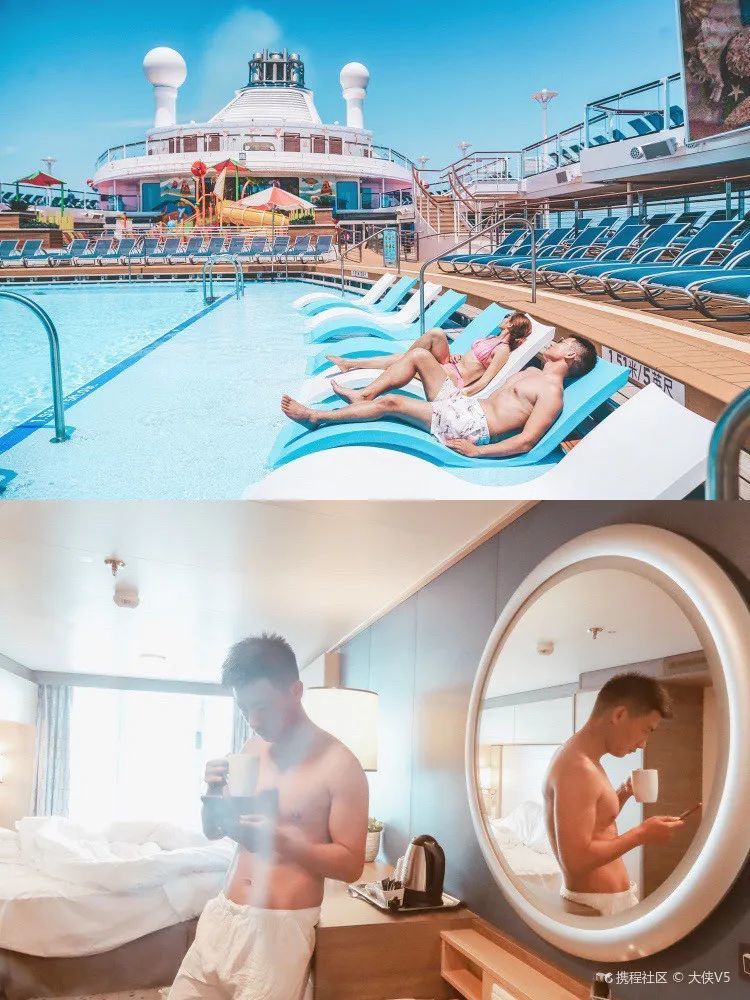在船上也能欣赏这艘巨型邮轮的内部构造,甲板、南极球、北极星还有演出大厅……精彩绝伦的表演和免费美食足以让人沉浸其中,纵情享受了。