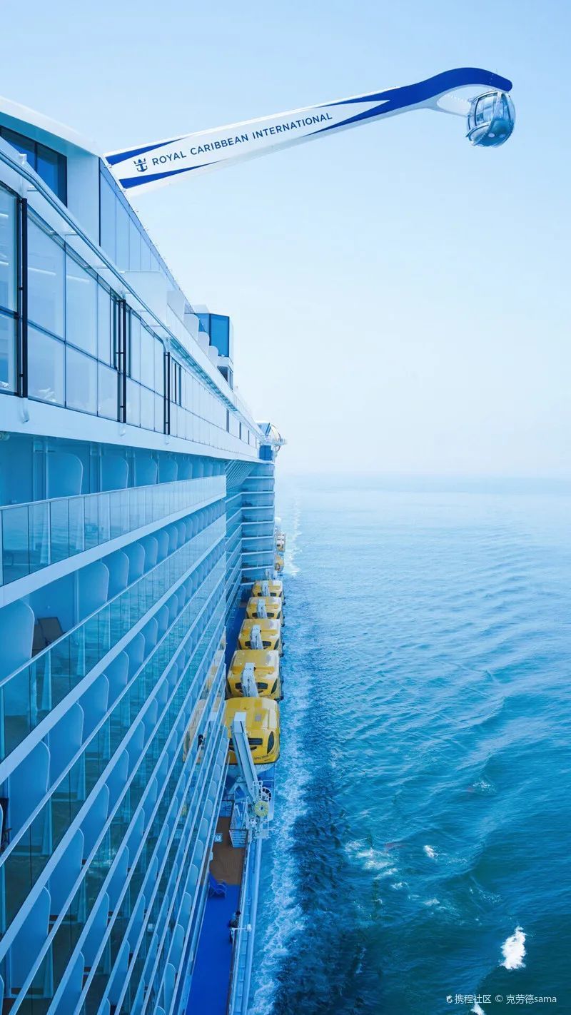 天气晴朗的时候,蓝天与大海一样蓝到澄澈透亮,仿佛一个圆一样将人包裹在中央,站在白色的豪华游轮甲板上,吹着风,感受“I'm the king of the world”的浪漫。