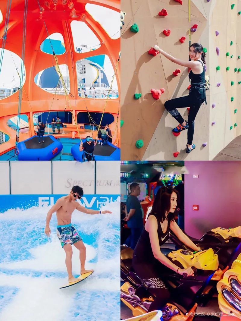 沿着甲板行走,攀岩墙、多功能室内运动馆SeaPlex还有击剑、射箭等游戏场地,室内游戏超多玩法,海上碰碰车、篮球场、海上Xbox360、滚轴溜冰、乒乓球、桌上冰球、镭射对决、AR游戏……只要能想到的,这里几乎都有!