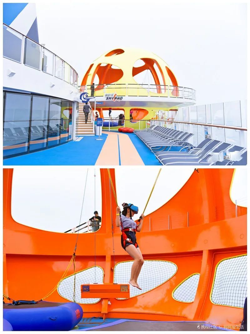 跨越14-16层甲板的高度,宽阔的球体内部有四个蹦极床,最独特的是这里的蹦床不仅设施完善,而且还拥有超酷的高科技VR设备,可以在模拟出来的各种环境当中,感受跳跃与飞翔的快乐!