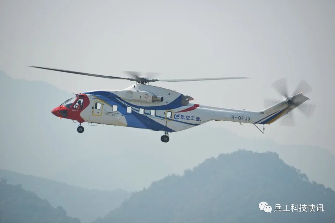 AC313A名义上是12年前首飞的老AC313直升机的改进型,虽然只是型号名称中的一字之差,其实由内到外进行了完全颠覆性的改变,事实上可以算是一架全新设计的直升机!这型直升机的成功首飞,也将AC313系列直升机的整体技术水平从国际第三代直升机水平提升至第四代,对于该系列直升机未来的发展更是具有划时代的重要意义!