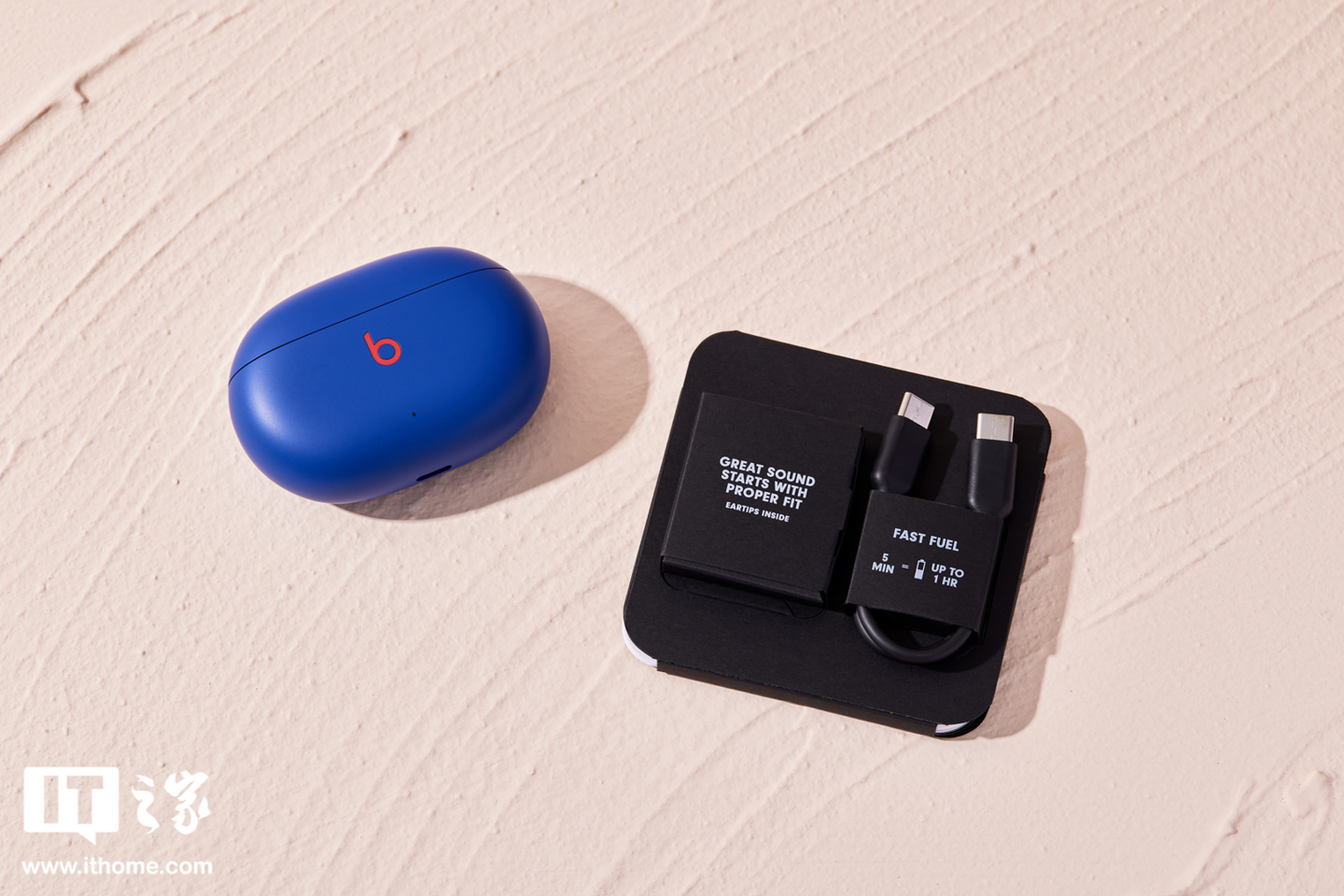 IT之家 6 月 10 日消息,苹果于 4 月份在官网上架了 Beats Studio Buds 耳机的三款新配色,分别为深海蓝、月岩灰、暮云粉。IT之家已经拿到了其中的“深海蓝”配色,带大家一起看看这款耳机的外观。