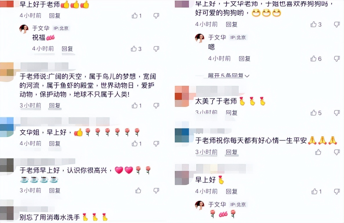 于文华发出这段视频后,也引来了许多网友的评论。有网友说于文华真是人美心善,还喜欢养狗真是很有爱心。也有网友贴心地提醒于文华在摸了狗狗之后别忘了洗手消毒。面对网友们的称赞和提醒,于文华则是亲切地在评论区里和粉丝们互动。