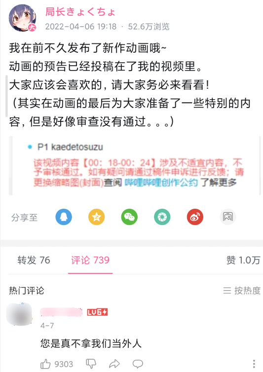 在入驻当天,他便带着满满的诚意,投稿了自己的动画预告,结果却被B站告知审核不通过。