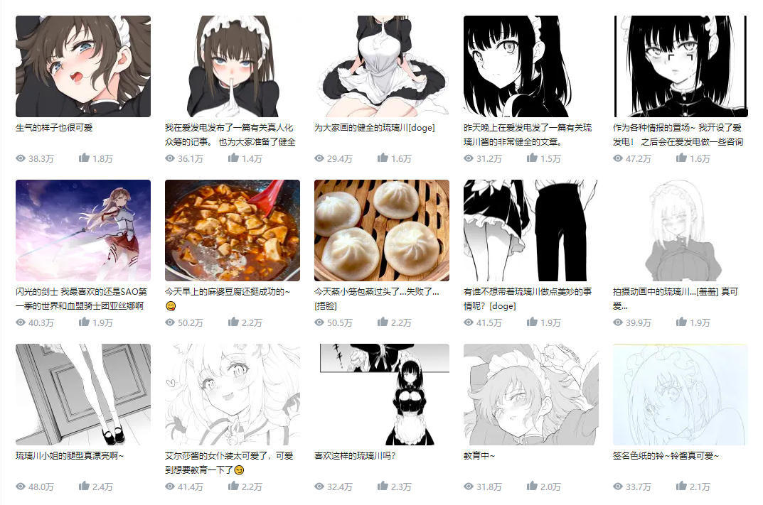 翻看他发布的内容,会发现多为半幅或局部的画面——在不断试探B站审核尺度的同时,也意外产生了犹抱琵琶半遮面的效果,激发着网友的想象力。