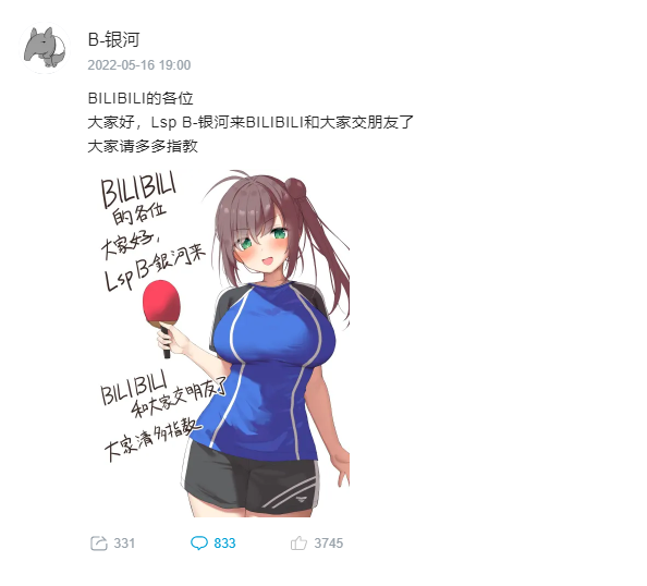 除了宮瀬まひろ,另一位知名大触“B-银河”同样在5月开设了B站账号,正式开始营业。