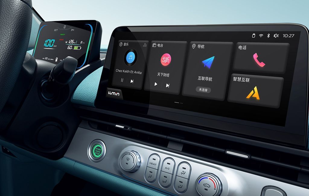 配置方面,长安Lumin配备了悬浮式液晶仪表盘和10.25英寸中控大屏,很有科技感。大屏的UI设计十分简洁,很容易上手,内部还搭载了音乐电台、导航、智慧互联、OTA升级等功能,基本能够满足当下年轻消费者的使用习惯。