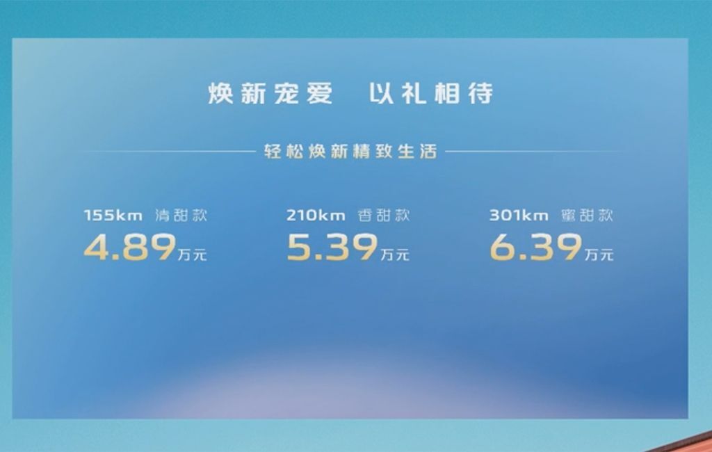 推荐车型:301km 蜜甜款