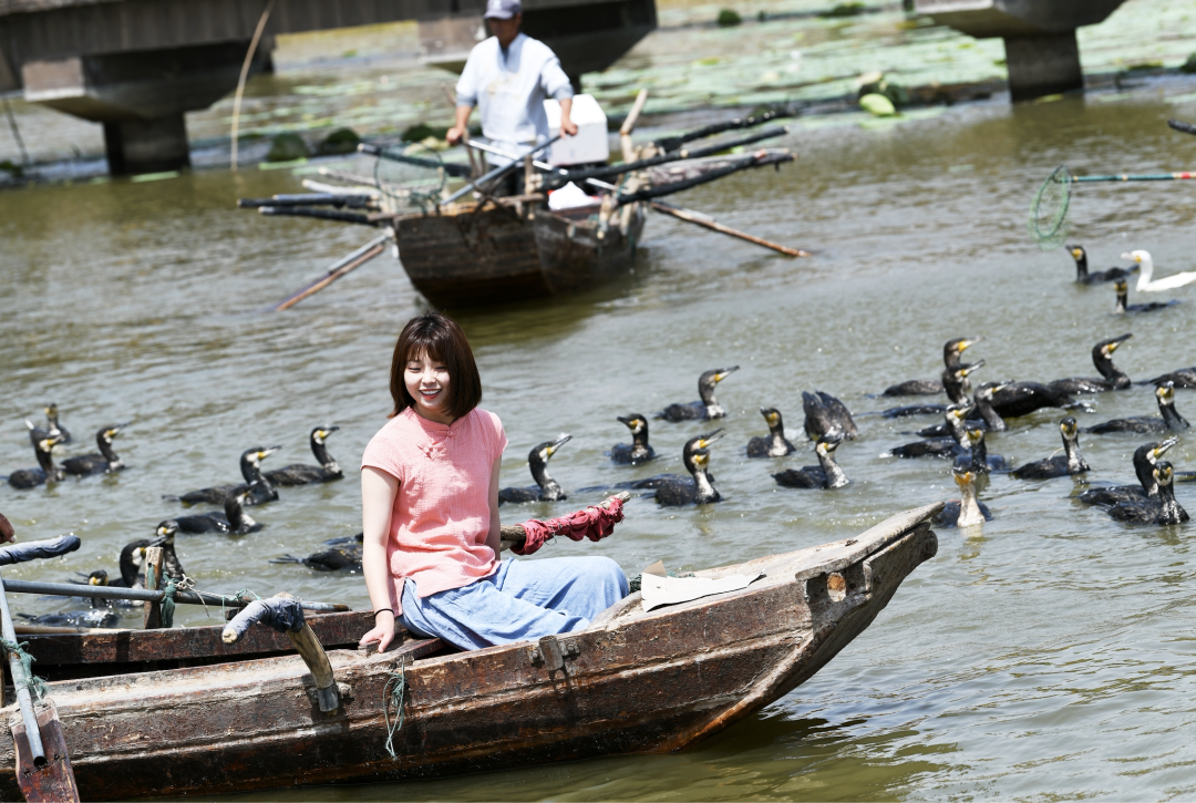 登上南阳古镇的码头,身后湖中穿梭捕食的鱼鹰时而激起朵朵水花引得游客驻足。“这是人们俗称的鱼鹰也就是鸬鹚,我们叫‘放鱼鹰’。”渔翁一边驱赶着鱼鹰下水,一边介绍,“放鱼鹰”原是湖上渔家一种很有特色的传统渔猎方式,也是中国传承千年的古老技艺和文化,随着镇上旅游业的发展,鱼鹰捕鱼已被开发为一项旅游表演项目,很多游客都会在观看表演的时候拿出手机记录下来。