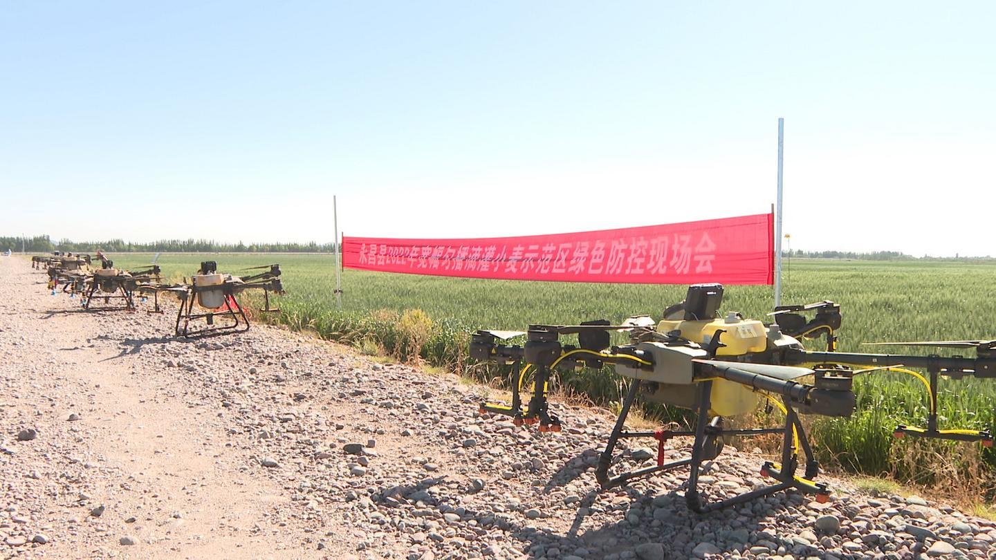 一架架无人机低空掠过青青麦田,均匀地喷洒下雾状农药……6月10日,永昌县粮食病虫害统防统治托管服务启动会暨小麦“一喷三防”工作启动,示范带动全县农作物病虫害统防统治、群防群治,保障粮食稳产丰产。
