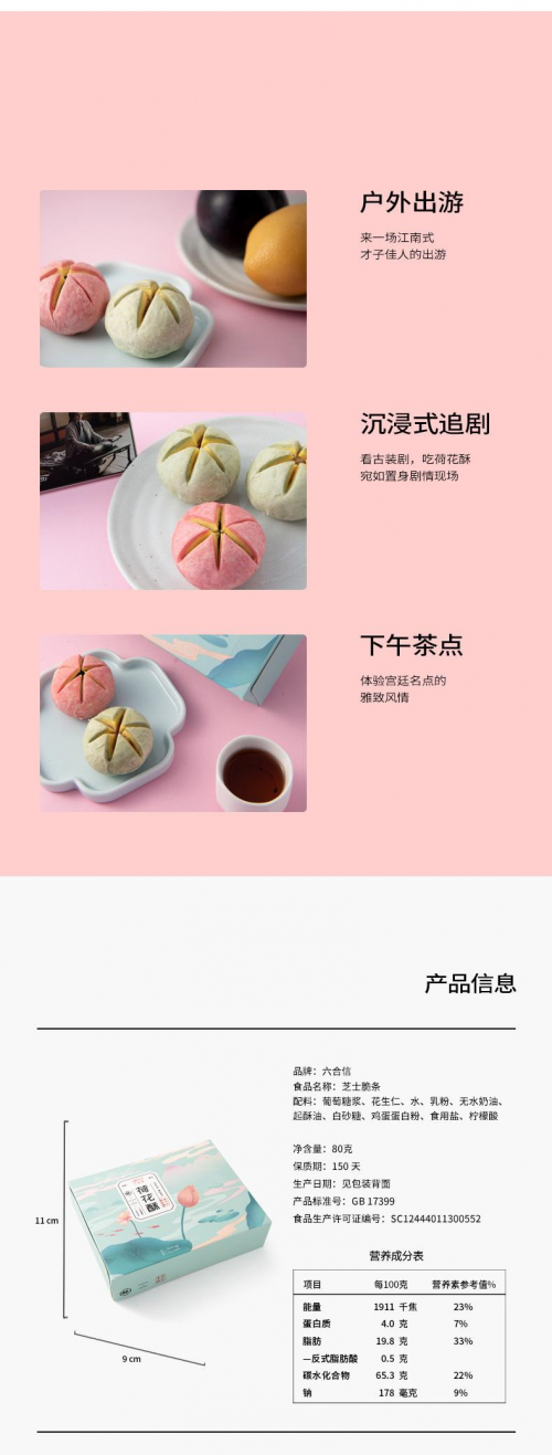 六合信荷花酥之所以能吃起来外皮酥软、入口即化、内馅温润、口感清爽,不仅是因为六合信荷花酥是经过非油炸低温慢烤处理,而且他们采用的都是极高品质的配料,没有添加任何防腐剂,所以吃起来才能如此美味。