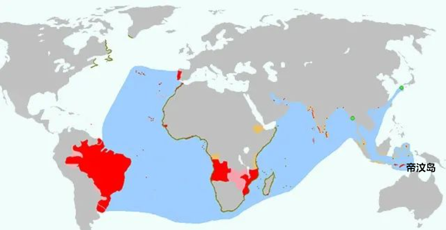▲葡萄牙殖民帝国一度囊括半个地球的海域