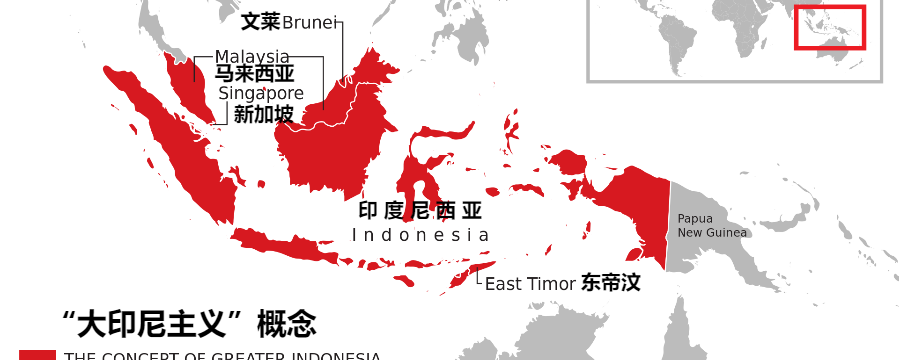 印尼独立运动一开始便伴随着大印尼主义,印尼认为整个印尼群岛的土著虽然信仰不同,但应该属于同一民族,讲同一种语言。一心想要建立一个大印尼国家,包括马来西亚、新加坡和文莱。