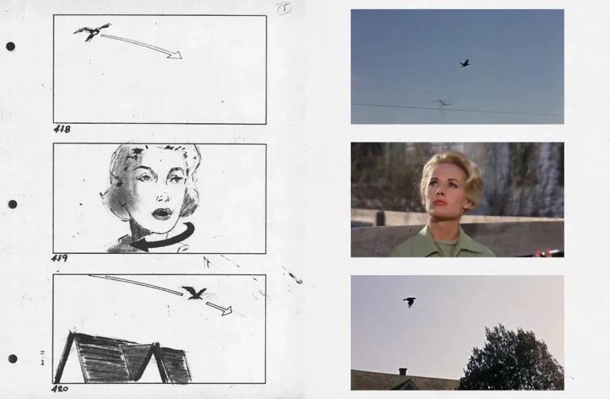 希区柯克 早在分镜 阶段,就摸清 观众的心理反应,让 人 充分代入女主看到群鸟时的震撼与恐惧中。