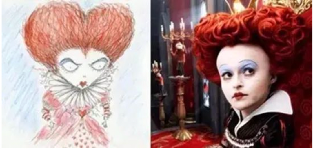 《爱丽丝漫游仙境》 中,对“红皇后角色”不符人体比例的夸张设计,也是哥特式美学的体现。