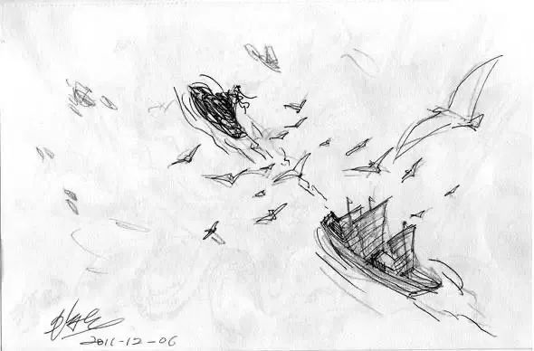 卡神用扎实的笔触描绘了颇为写实的船身与船舷。